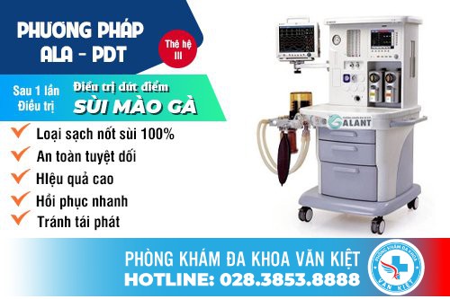 + Sùi mào gà có dấu hiệu chuyển biến nặng sẽ được khắc phục bằng kỹ thuật ALA – PDT. ALA – PDT sử dụng chất cảm quang đặc biệt và một lượng oxy chiếu lên vùng viêm nhiễm, các nốt sùi để hỗ trợ ngăn chặn sự phát triển của mô, loại bỏ nhanh virus HPV.