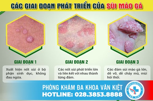 Các giai đoạn phát triển của bệnh sùi mào gà