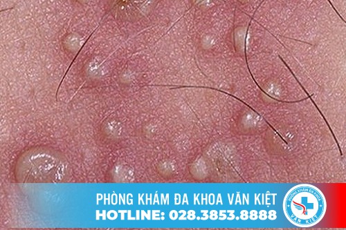 Mụn rộp sinh dục: Là bệnh xã hội do virus HSV gây ra. Mụn rộp sinh dục sẽ khiến cho dương vật nổi mụn nước, các mụn này tập trung thành chùm, khi ấn có mủ màu trắng chảy ra. Khi mụn rộp sinh dục bị vỡ ra sẽ tạo thành các vết loét gây đau nhức cho bệnh nhân. Mụn rộp sinh dục dễ “ghé thăm” bệnh nhân nhiều lần nên cần hết sức chú ý.